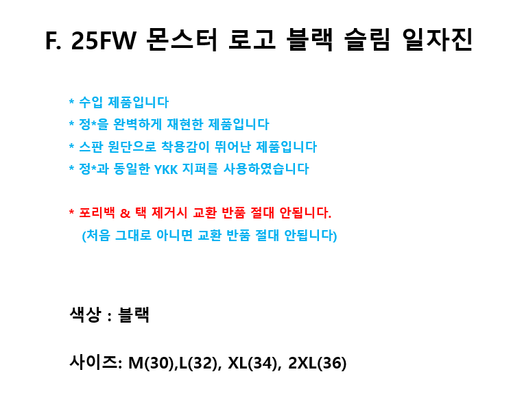 F. 25FW 몬스터 로고 블랙 슬림 일자진