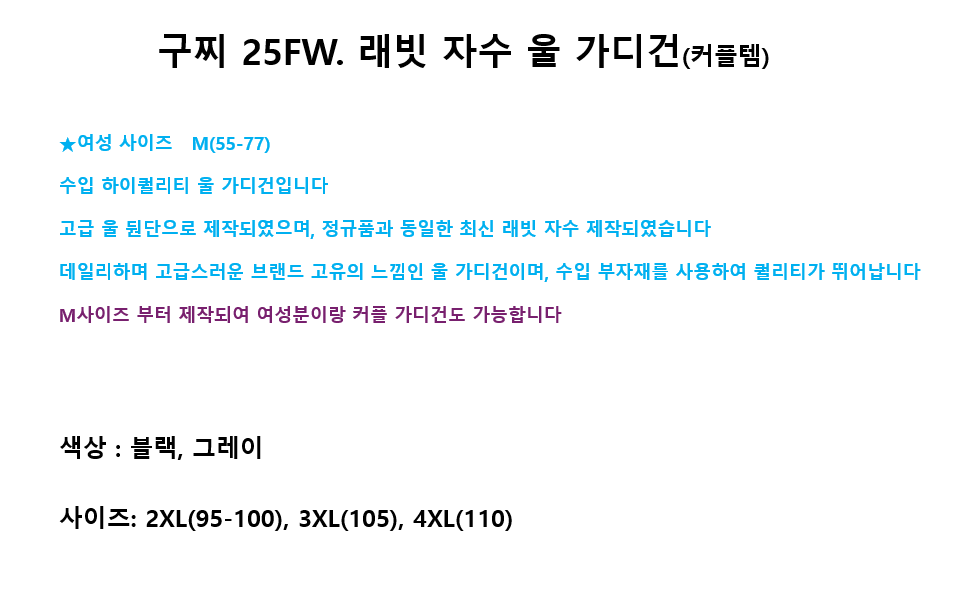 구찌 25FW. 래빗 자수 울 가디건(커플템)